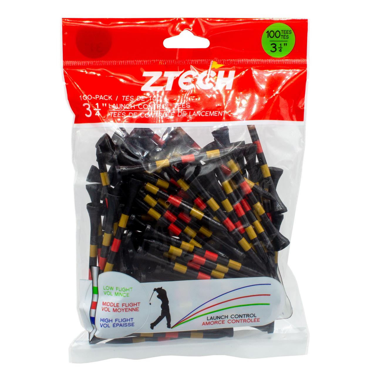 ZTECH Tés noirs avec rayures jaunes et rouges, 3 po 1/4 (100)