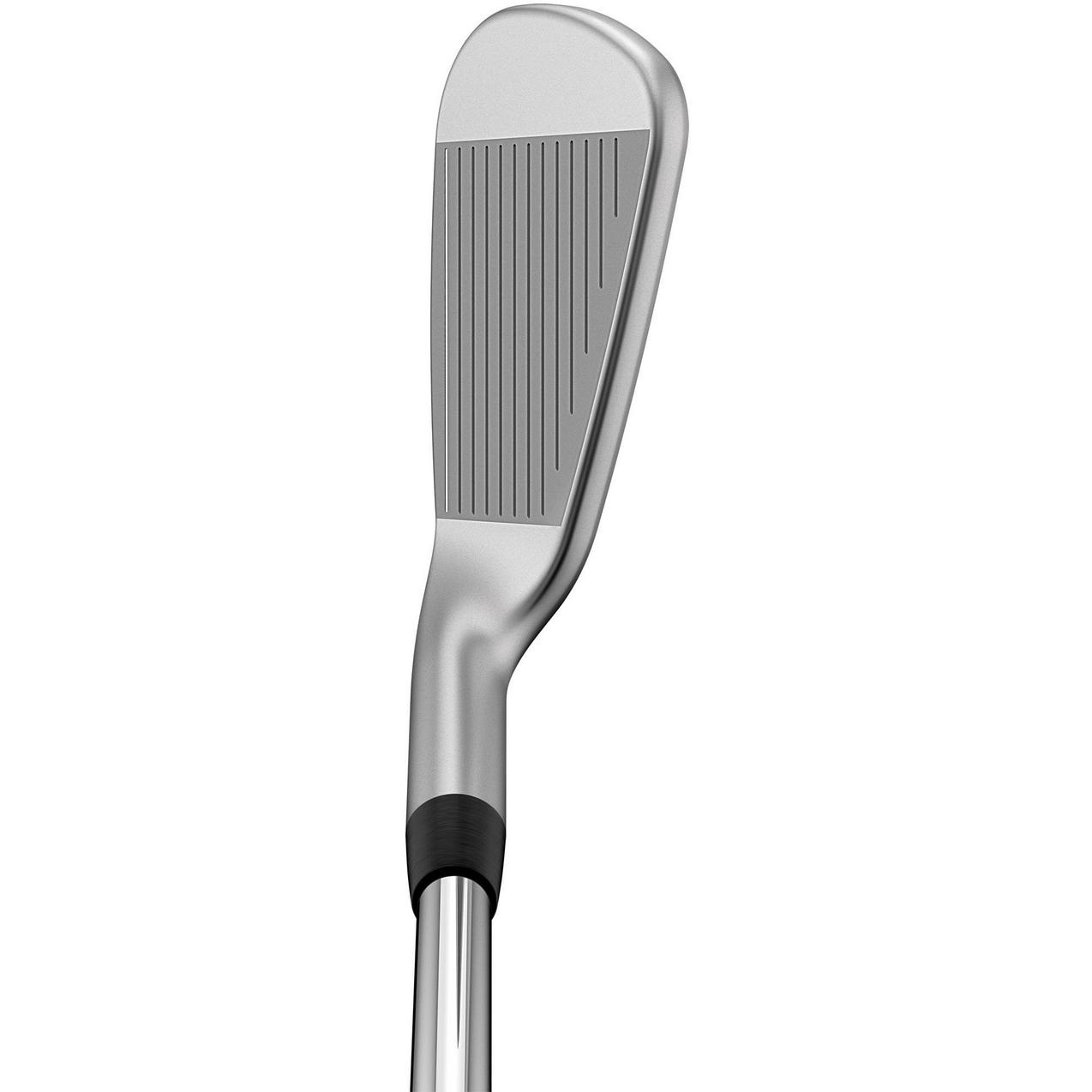 L'insertion en élastomère plus grande et plus souple dans la tête compacte s'active à l'impact pour offrir une sensation souple inégalée, tandis qu'une face et des rainures usinées aident à fournir l'impact constant et la distance précise nécessaires pour inscrire un bon pointage. Des fers longs rapides et tolérants et des fers courts et intermédiaires précis et contrôlés créent un ensemble très performant.
